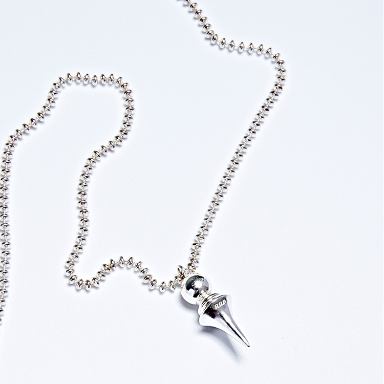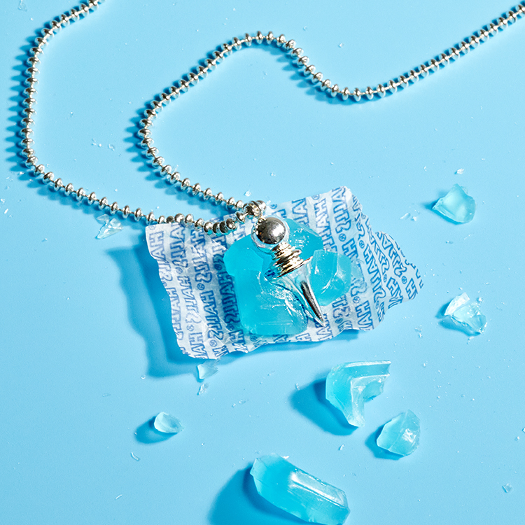 레이어진 도형들이 아이스크림같은 팬던트와 타원형의 볼체인이 특징적인 네크리스입니다.