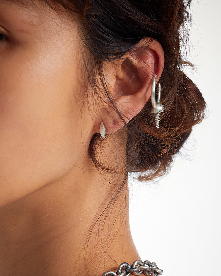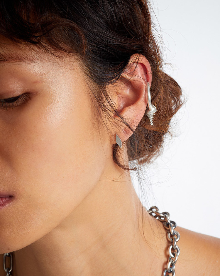 락킹도킹피킹의 시그니처 모양인 길쭉한 다이아몬드 형태로. 뾰족하고 얄상한 라인에 착용했을 때 더 빛나는 이어링입니다.