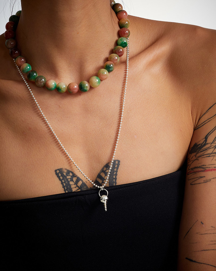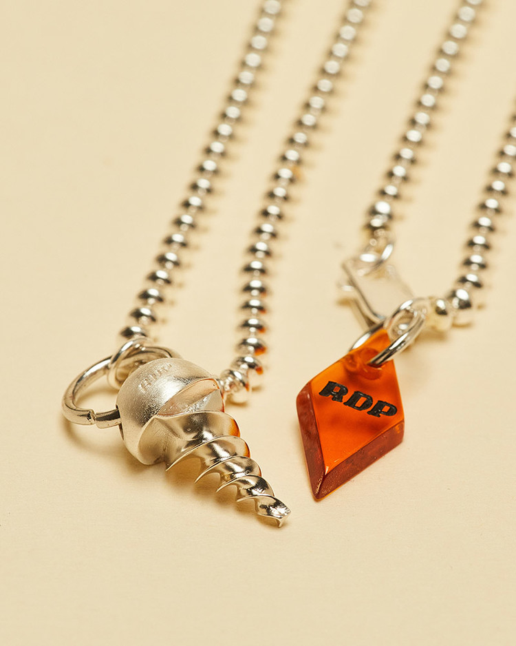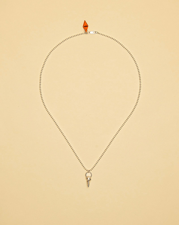 나사 모양을 소프트아이스크림처럼 모양 낸 펜던트와 납작한 타원형태의 체인 목걸이로 기장감이 길어 남녀 모두 캐주얼하게 착용하기 좋습니다.